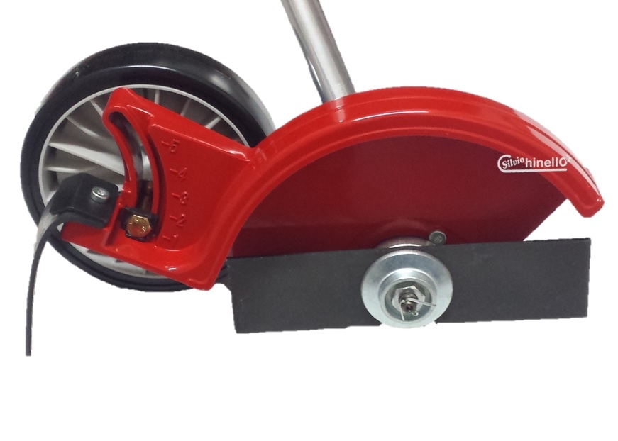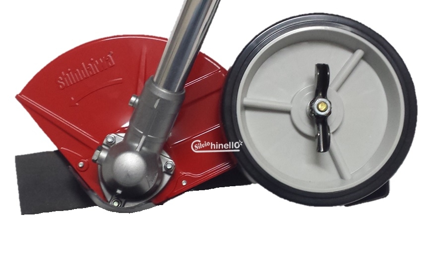 La sua particolare conformazione lo rende pratico per essere utilizzato su qualsiasi terreno (grazie alla ruota guida) e limita il diffondersi dei detriti di sfalcio (grazie al parasassi laterale in metallo).