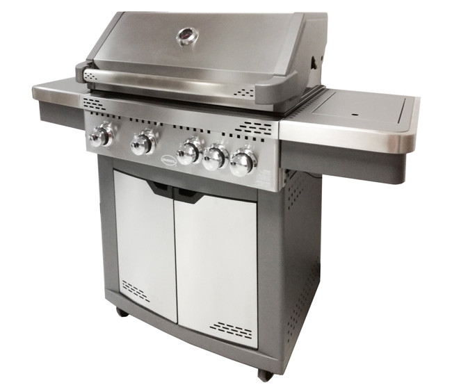 Unico, elegante, versatile e resistente, in grado di offrire alla nostra clientela una valida alternativa per arredare il proprio giardino e la propria casa. Generation FUNPRO INOX è un barbecue che si distingue nettamente dalla concorrenza. Caratteristiche tecniche - 4 Bruciatori in acciaio inox AISI 304 - 3.5 Kw ciascuno - Potente bruciatore laterale 2.9 Kw - Area di cottura 710 x 490 mm. - Griglia smaltata in ghisa scanalata a "V" - Deflettori in acciaio smaltato nero - Coperchio inox a doppio strato - Vano porta- bombola interno - Accensione indipendente su ogni bruciatore - Potenza totale: 16,9 kw - Altezza coperchio chiuso: 1192 mm - Larghezza: 1427 mm - Profondità: 596 mm - Peso: 59,5 kg