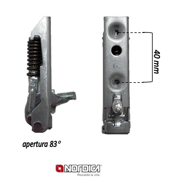 Cerniera per porta forno a ribalta, apertura a 83° ("F"), per cucine a legna del marchio, tra cui: