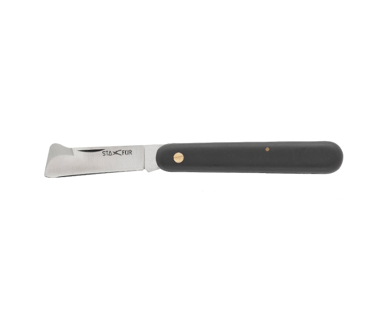 xColtello da innesto con lama dritta in acciaio al carbonio speciale satinato, richiudibile.