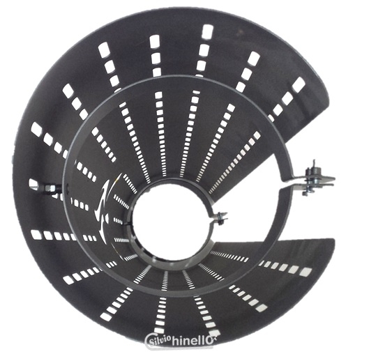 - le staffe distanziatrici: il copritubo si aggancia al tubo della stufa con l'ausilico di due staffe distanziatrici, una superiore e una inferiore, che oltre ad avere la funzione di ancoraggio hanno la funzione di tenere alla giusta distanza il copritubo dal tubo della stufa.
