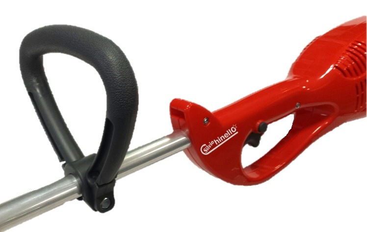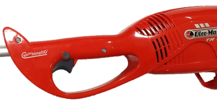 - Interruttore di sicurezza: per avviare il decespugliatore elettrico è stata installata una leva accelleratore abbinata ad un pulsante di sicurezza. Questo fa si che non si possa avviare la macchina in maniera accidentale ma solo premendo entrambi i dispositivi.