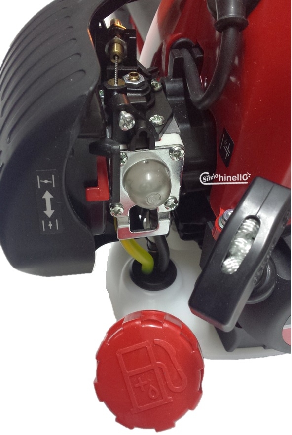 Per facilitarne l'utilizzo in pendenza, l'asta del decespugliatore è stata dotata di aggancio per cinghiaggio.