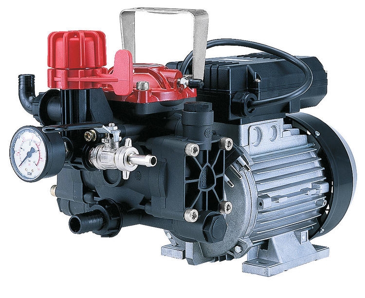Gruppo elettropompa adatto a spruzzare liquidi anticrittogamici sulle piante e colture in generale, diserbo, disinfestazione locali o in qualsiasi altro lavoro dove serve applicare un prodotto nebulizzato non aggressivo. Motore elettrico monofase: alimentazione 230 V/50 Hz , potenza kW 1.1 (1.5 HP) completo di interruttore e cavo con spina. La pompa, a due membrane, ha una portata di 25 litri al minuto ad una pressione massima di 25 bar. Di serie viene dotata di gruppo regolatore di pressione in plastica mod. GR30, manometro e un'uscita per una lancia. L'elettropompa viene utilizzata come gruppo mobile vicino a serbatoi fissi oppure montata su carrelli con serbatoio. Conforme alle norme CE