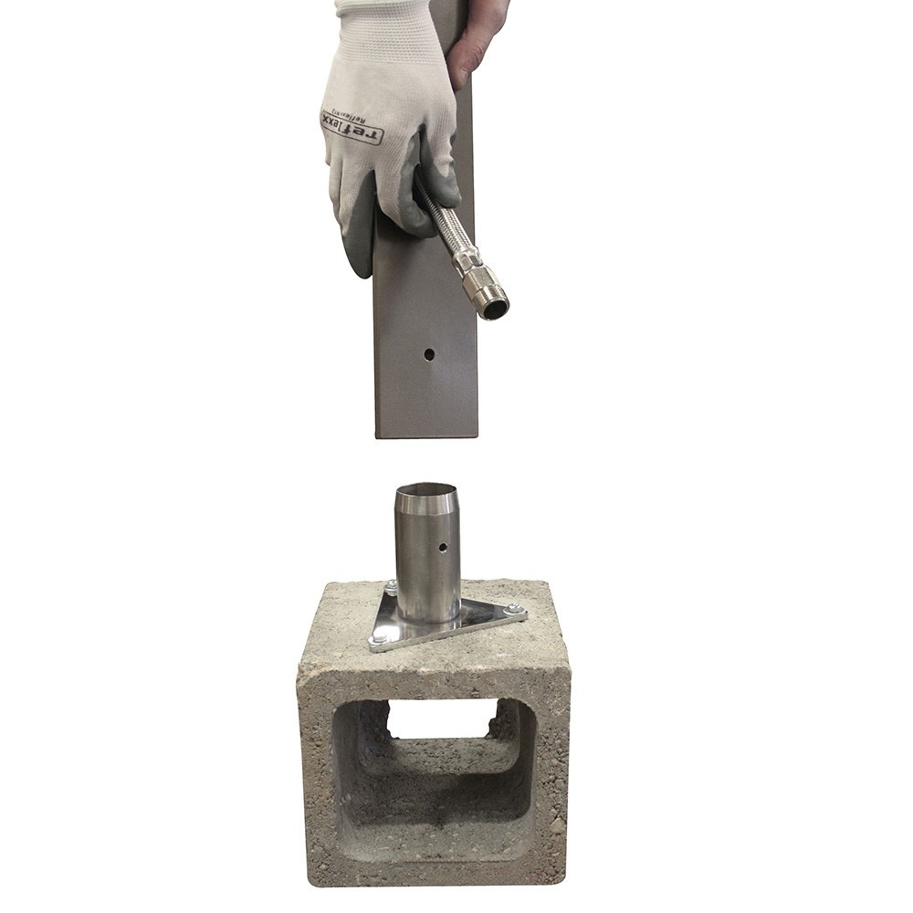 - può essere fissata ad una superficie in cemento o pietra (mediante l'apposita base in acciaio inox cod. 135 provvista di fori di ancoraggio, OPTIONAL).