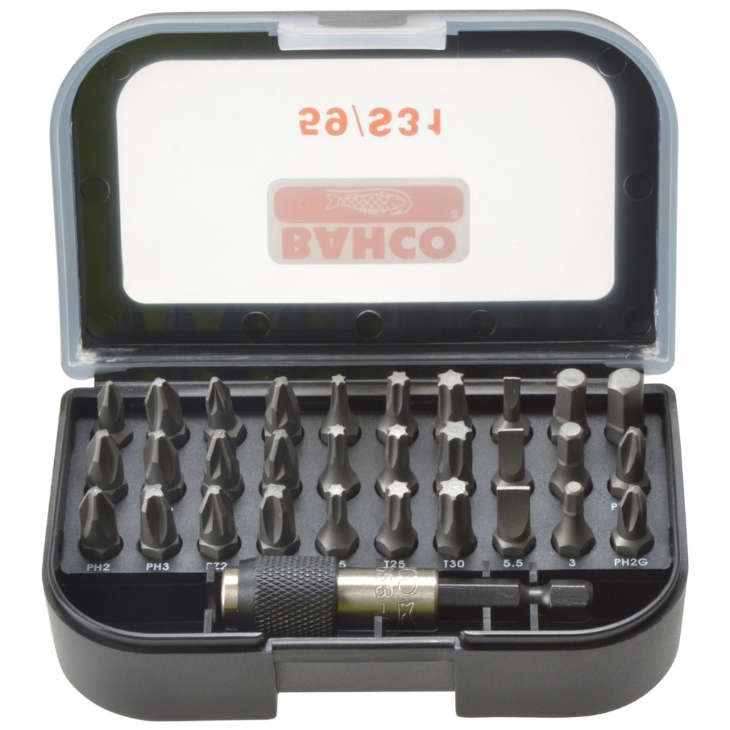 Pratico kit inserti Bahco composto da 30 inserti, porta- inserti magnetico e custodia in plastica con coperchio richiudibile e gancio per cintura, ideale da usare con qualsiasi trapano o avvitatore.