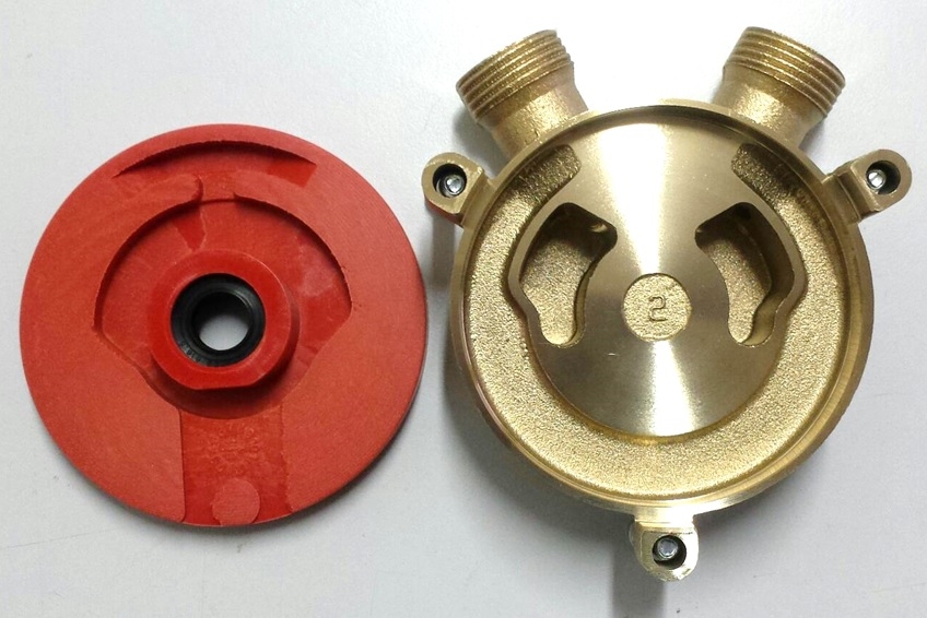 Corpo pompa Rover in bronzo completa di coperchio tecnopolimero per modelli: Rover 20 Drill14/20 Marina 20 Colombo 6- 12 NB: il kit contiene tenuta centrale; NON contiene guarnizione OR Diam. coperchio tecnopolimero 82.5mm