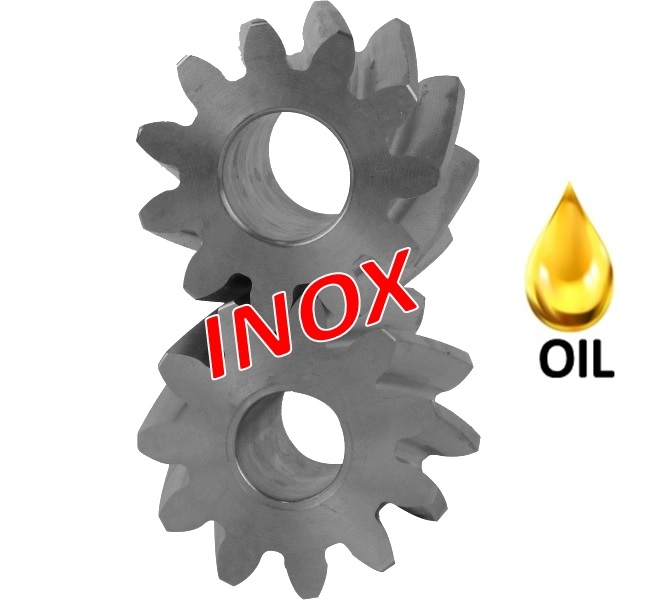 Gli ingranaggi sono disponibili in acciaio INOX (per liquidi oleosi) o in teflon- PTFE (per detergenti e detersivi).