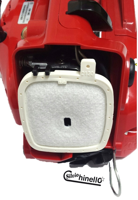 - filtro aria in panno ad alto potere di filtraggio: aiuta a preservare il carburatore da polvere e detriti. Il coperchio a protezione del filtro è a sgancio rapido, per facilitare e velocizzare la manutenzione;