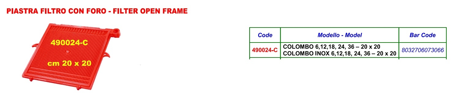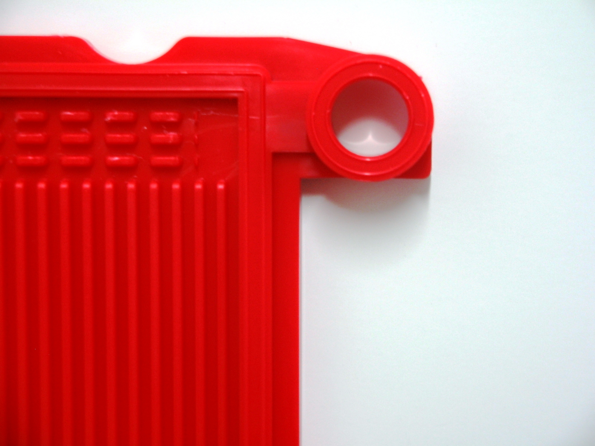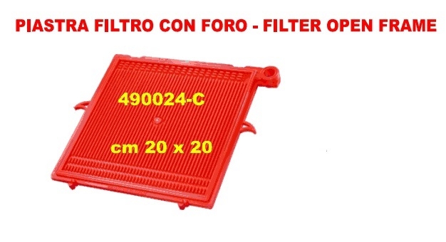Piastra filtro rossa con foro in PP - la più vicina alla pompa che permette il passaggio del liquido.
