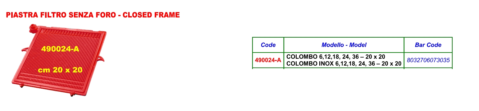 Piastra filtro rossa senza foro in PP - chiude il circuito del liquido