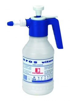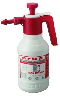 Pompa irroratrice a precompressione con azionamento manuale per liquidi non aggressivi. Viene utilizzata in giardino per irrorazione di insetticidi, pesticidi, anticrittogamici, ed in casa per esigenze di nebulizzazione in genere. Il serbatoio è prodotto in materiale plastico, polietilene riciclabile. La testa di vaporizzazione ha un cilindro pompante di grandi dimensioni, per facilitare la messa in pressione del serbatoio, ed un ampio pomello di azionamento. La maniglia di presa è inclinata per un utilizzo confortevole e defaticante per il polso. Capacità effettiva: 1.5 lt. Possibilità di scelta tra la versione classica (Eros) e la versione VITON (Eros Viton).