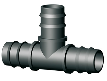Raccordo a T per tubo gocciolante con n. 3 portagomma maschio da 16mm