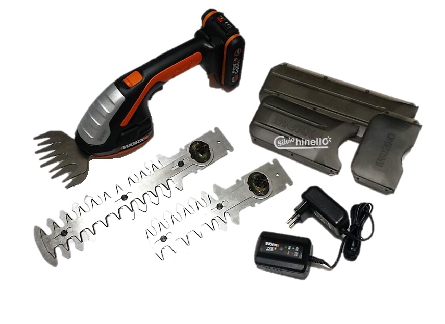 - due lame per taglio e rifinitura siepi ed aiuole: una lunga 12 cm e l'altra 20 cm, permettono di svolgere qualsiasi lavoro di rifinitura comodamente e in maniera veloce;