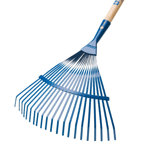 Il rastrello scopa Agef a 21 denti fissi viene usato per la pulizia del giardino (es. per raccogliere foglie cadute, aghi di pino o erba falciata) o per la manutenzione dell'orto (es. per sistemare il terreno prima della semina o della posa di piantine).