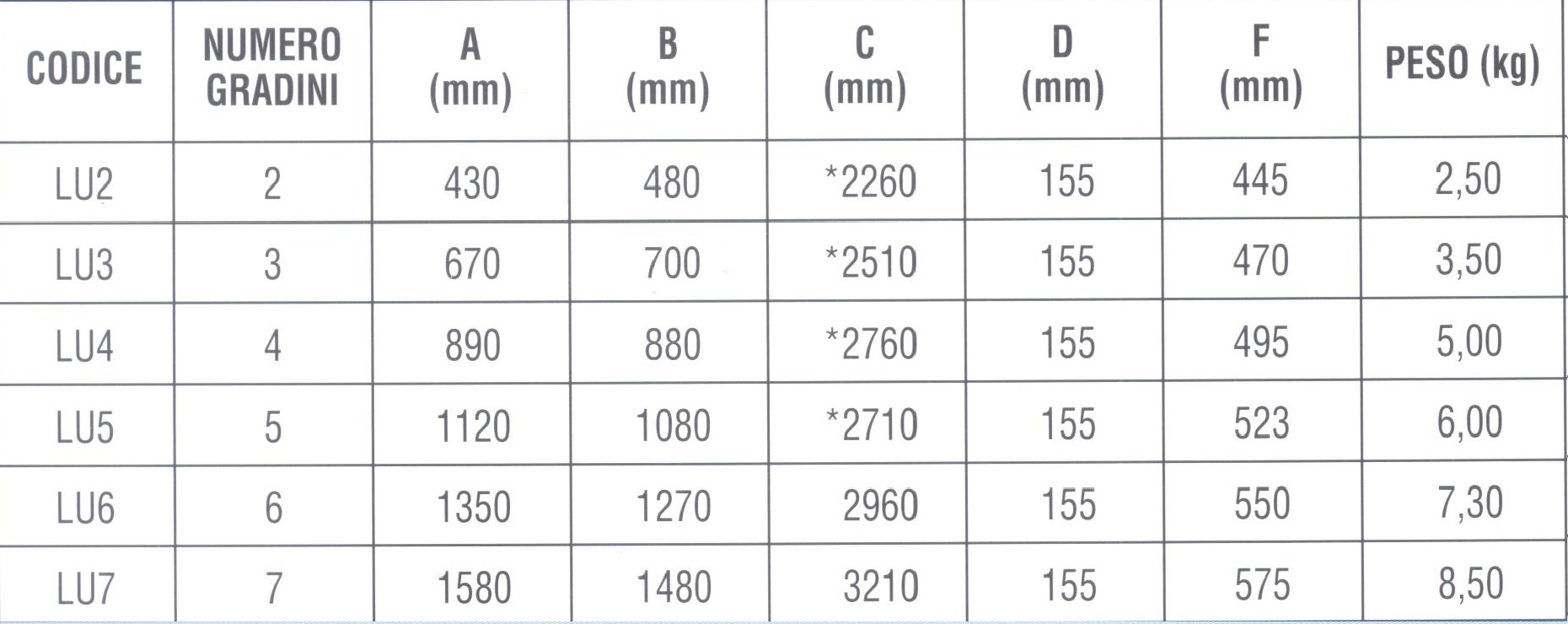 Disponibile in misure da due a sette gradini.