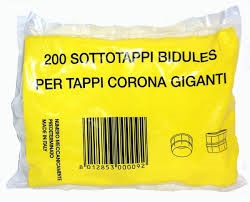 Sottotappi bidule in confezione da 200 pezzi, usati generalmente per vino frizzante e spumante, in coppia con i tappi corona diam. 29mm.