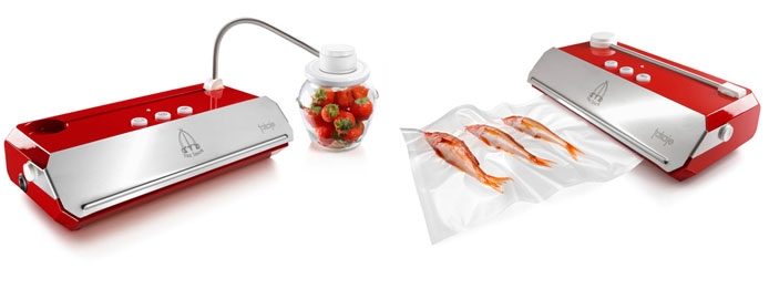 L'unico sistema che permette di confezionare sottovuoto qualunque vaso in vetro con coperchio in metallo. Trasformi così uno scarto in una risorsa, risparmiando notevolmente tempo e soldi e riducendo al minimo gli sprechi. Carrozzeria in ABS e inox. Disponibili 3 colori: bianco, nero e rosso Quattro diverse modalità di funzionamento: - Ciclo automatico - Ciclo manuale - Ciclo svuotamento vasi - Ciclo sigillatura (per rotoli). Barra saldante (larghezza 3 mm / lunghezza 33 cm) ad altissima resistenza termica. Facile e precisa regolazione della saldatura. Aspirazione da contenitori integrata sulla macchina. Vaschetta estraibile per una facile pulizia. Camera del vuoto progettata per facilitare l'inserimento delle busta, ridurre lo spreco di plastica e preservare la macchina dall'aspirazione di liquidi. Dotazione standard: - 10 buste (20x30cm); - 1 valvola (per sottovuoto vasetti o contenitori); - 1 tappo con valvola (per sottovuoto bottiglie in vetro). Caratteristiche tecniche: Peso: 3,1 kg Ingombro: 36,5x18,5x11 cm Lunghezza barra saldante: 33 cm Potenza assorbita: 200 W Depressione massima: 800 mbar Portata pompa del vuoto: 16 l/min Tensione e Frequenza: 220- 240 V / 50- 60 Hz