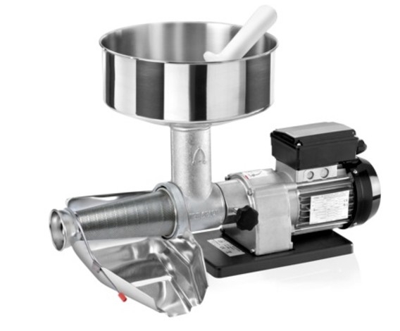 Spremipomodoro elettrico per le esigenze della famiglia (taglia n° 3). Veloce e comodo smontaggio per una facile e rapida pulizia. Corpo tritacarne opzionale - e' possibile applicare al motore dello spremipomodoro l'accessorio tritacarne, per ottimizzare al massimo le funzionalità di questa macchina. DOTAZIONE: - Corpo in ghisa stagnata. - Tramoggia e collettore in acciaio inox. - Filtro in acciaio inox. - Elica in teflon. - Motore asincrono monofase da 220- 240 Volts - 50Hz Caratteristiche tecniche: Peso: 9,0 kg Ingombro: 33x53x23 cm Potenza motore: 300 w Giri dell'elica: 160 r.p.m.