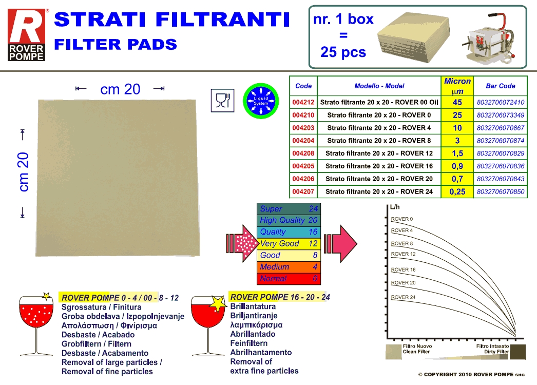 Pannello filtrante originale ROVER POMPE da usare come ricambio per il filtro COLOMBO.