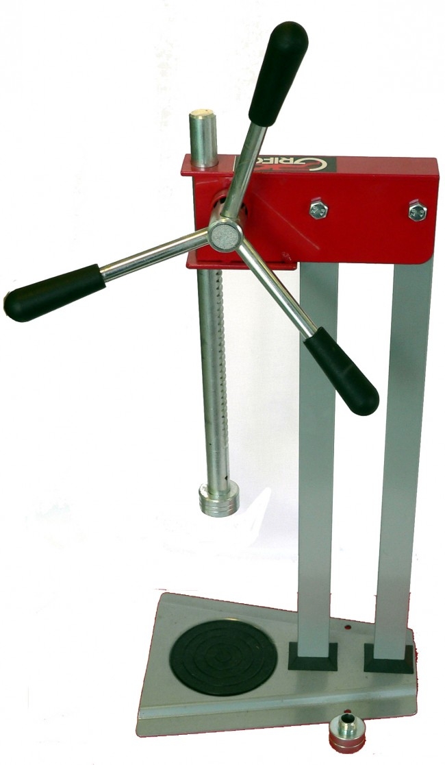 Tappatrice manuale a colonna con meccanismo a cremagliera per tappi corona.