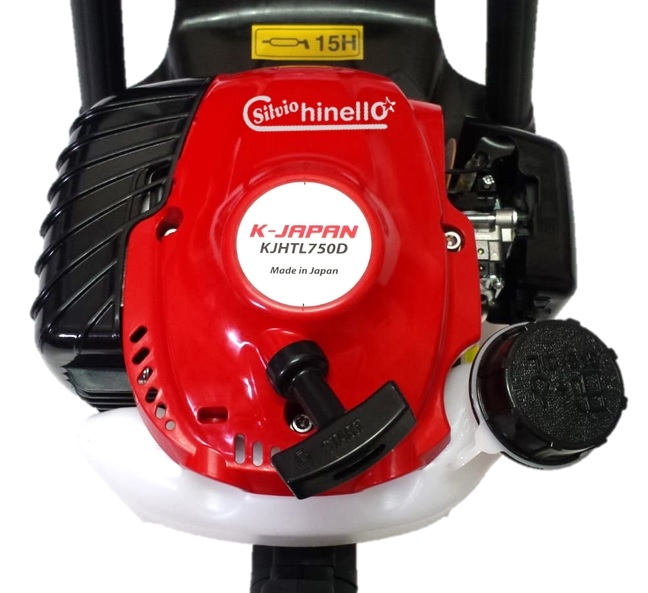 Il tosasiepe professionale K- Japan è dotato di impugnaturta posteriore girevole e regolabile per un utilizzo comodo e marmitta di scarico rivolta in avanti.