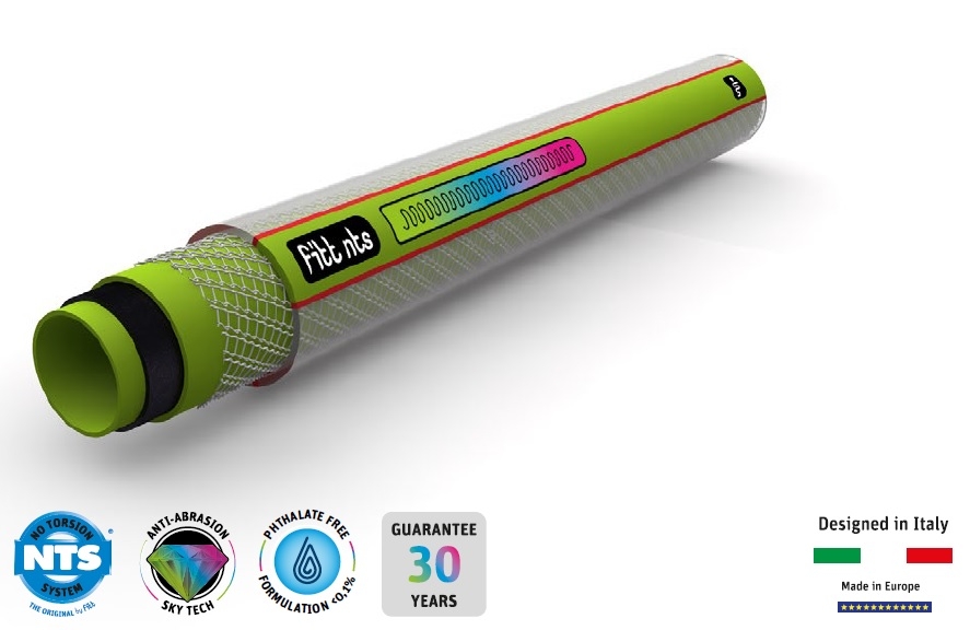 Il sistema NTS® innova in profondità il rinforzo del tubo Lime, grazie a un’esclusiva maglia elicoidale che garantisce la stabilità assoluta senza alcuna dilatazione, annullando, sotto l’effetto della pressione, la torsione del tubo e la formazione di nodi e strozzature, così da assicurare sempre il flusso dell’acqua.